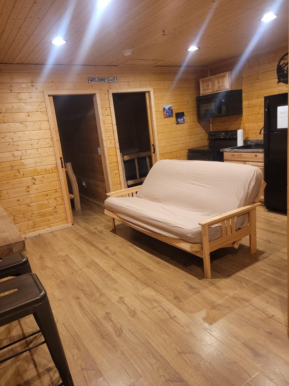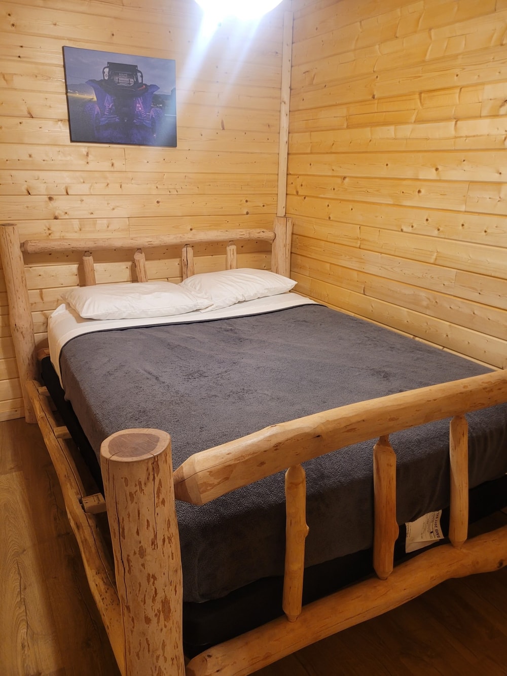Mudlove Offroad is a two-bedroom cabin designed for trail groups who want comfort, convenience, and a straightforward setup. You’ll have two queen beds plus a full futon in the living room—perfect for an extra guest without squeezing the space.