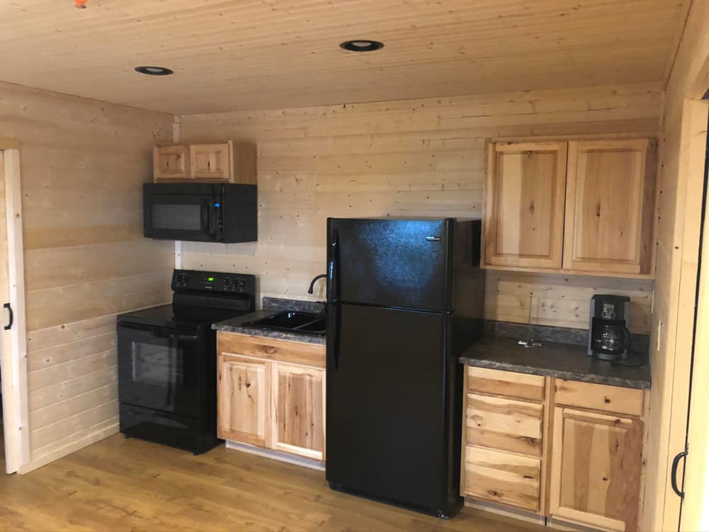 Inside: heat/AC, Wi-Fi, TV, coffee pot, microwave, and a full kitchen. Outside: a charcoal grill and fire pit for the kind of nights you’ll want to repeat.